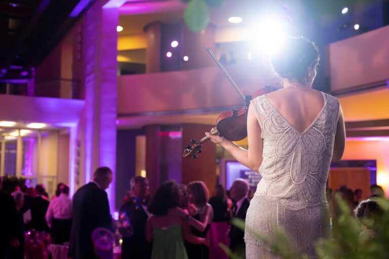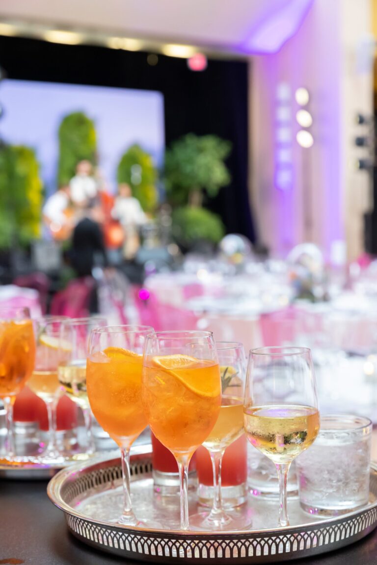 The intentionality of branding and thematic elements throughout from menu cards adorned with art of a woman’s face, a backdrop with the NMWA namesake to provide the perfect photo opportunity for attendees, beautiful jazz entertainment provided by NYC-based band Carte Blanche, and curated menus and cocktails to celebrate the partnership with the Embassy of Italy for providing the venue.
